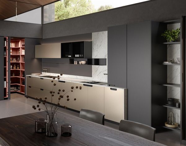 I tratti decisi e forti della cucina Kappa disegnano spazi moderni e raffinati dove misurarsi con il cibo e l’ospitalità, interpretando il bisogno di ambienti sempre più articolati e rappresentativi, consoni ai nuovi stili di vita contemporanei. Una scelta attenta e limitata di finiture per una modellistica completa e che può essere arricchita da moduli attrezzati, soluzioni funzionali e ampi contenitori, in grado di offrire l’assoluta armonia tra gli spazi e l’emotività.